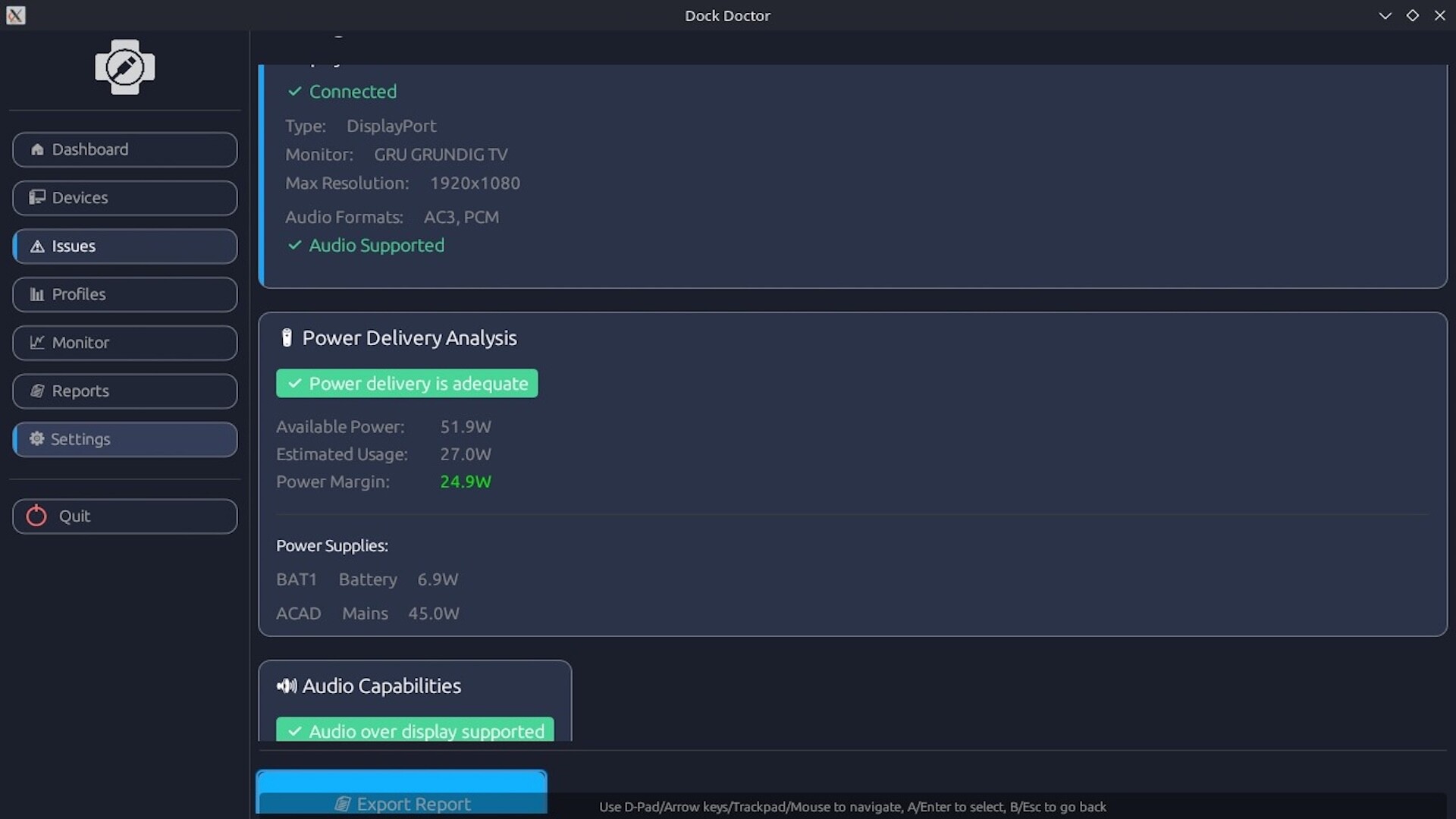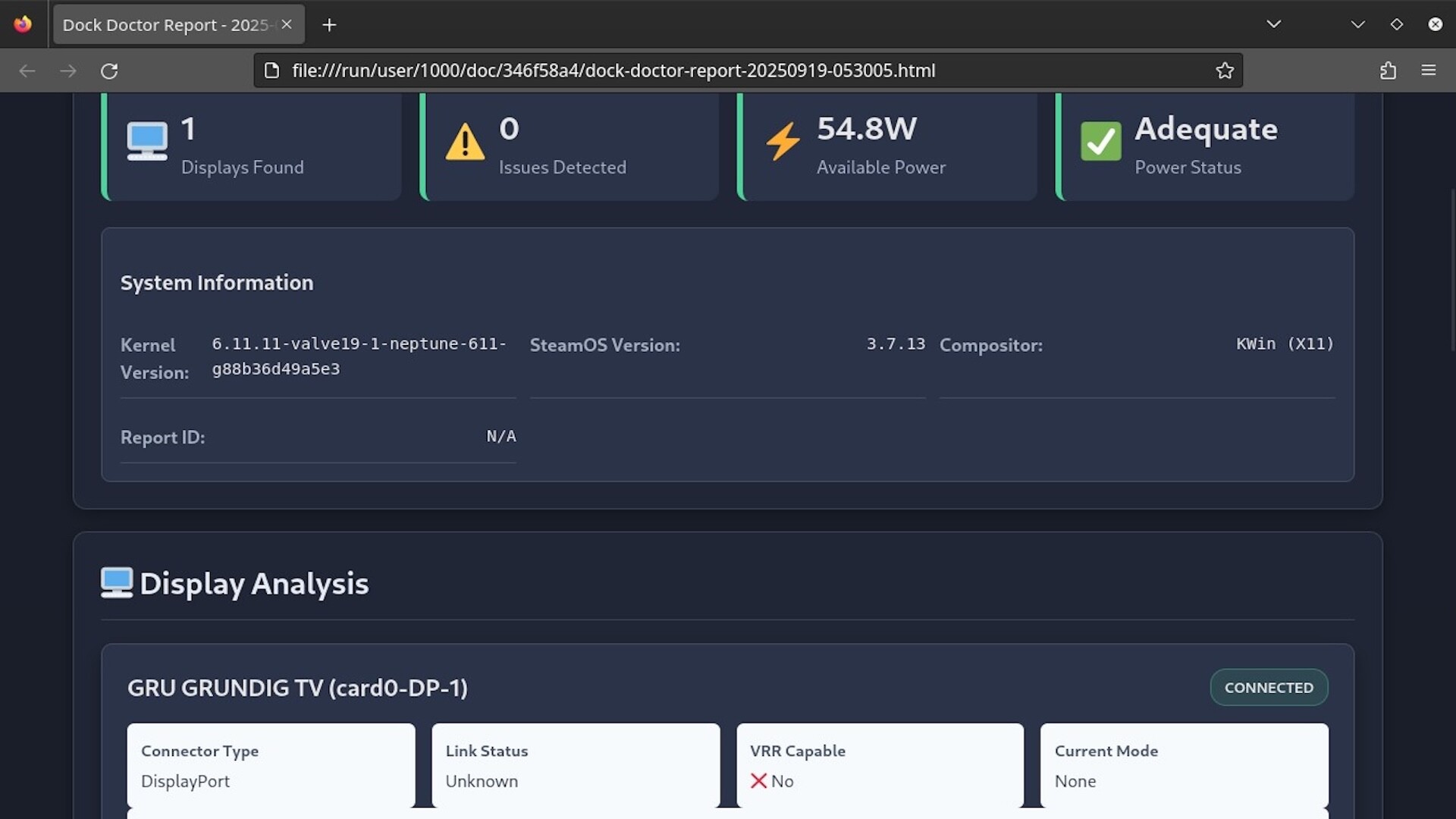 Dock Doctor takes the guesswork out of docked gaming on Steam Deck and Linux PCs. If you’ve ever dealt with black screens, missing audio, or flaky power after docking, Dock Doctor shows you exactly why — and how to fix it.